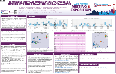Conclusions: The use of BsAbs in MM has demonstrated excellent efficacy; however, these agents have been linked to a unique AE profile. BCMA BsAbs were associated with less hematologic toxicity, 22.4% (grade 3/4: 17.4%) vs 30.6% (grade 3/4: 22%) for GPRC5D/FcRH5, and BCMA BsAbs were associated with lower CRS rates, 56.8% (grade 3/4: 1.3%) vs 73.1% (grad 3/4: 1.7%) for GPRC5D/FcRH5. This is important information for treatment selection and mitigation strategy development aiming to optimize patient outcomes.