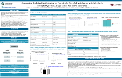 In this real-world evaluation, motixafortide did not demonstrate superiority over plerixafor in pCD34 mobilization, stem cell yield, or collection efficiency in MM patients. Higher rates of adverse reactions with motixafortide influenced continued institutional preference for plerixafor in initial ASCT mobilization. Further studies will focus on motixafortide’s role in poor mobilizers and post-transplant engraftment.
