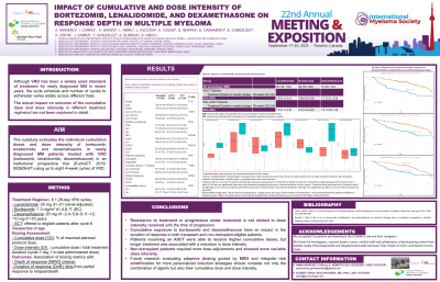 Dose reductions of btz, len or dex below 75% expected cumulative dose were associated wih lower rates of CR and shorter duration of response. Our findings highlight the critical relevance of treatment optimization and toxicity management to maintain full induction treatment.