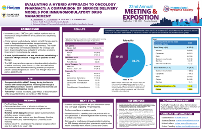 To address these gaps and promote equitable, patient-centred care, a novel hybrid care model was introduced within the health authority. In March 2024, a three-year-pilot program was launched, establishing a dedicated IMiD pharmacist to support all patients on IMiD therapy. The pharmacist provides comprehensive patient education, proactive monitoring, prescribes supportive care medications, and communicates with both the dispensing pharmacy and cancer care team to provide comprehensive, efficient care and improve patient’s access to specialized cancer care through virtual or in-person appointments.