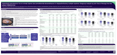 Isatuximab subcutaneous via an on-body injector plus pomalidomide-dexamethasone in relapsed/refractory multiple myeloma: Subgroup analysis by prior lines of therapy from the Phase 3 IRAKLIA trial