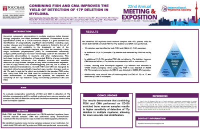 Conclusions: Our results demonstrate that combining FISH and CMA performed on CD138 enriched bone marrow samples results in higher sensitivity of detection of 17p deletion in multiple myeloma, allowing for more accurate risk stratification.