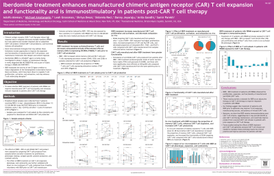 IBERDOMIDE (IBER) TREATMENT (Tx) ENHANCES MANUFACTURED CHIMERIC ANTIGEN RECEPTOR (CAR) T CELL EXPANSION AND FUNCTIONALITY AND IS IMMUNOSTIMULATORY IN PATIENTS POST-CAR T CELL THERAPY