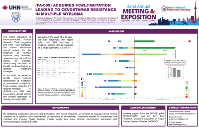 Conclusions: By integrating longitudinal genomic characterization with clinical response, we present an acquired clonal FCRL5 mutation as a putative novel mechanism of resistance to cevostamab. Functional studies to characterize this mutation are ongoing. These findings provide insight into tumor intrinsic mechanisms associated with immunotherapies targeting FcRH5.