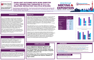 While T cells redirecting therapies (TCRT), including bispecific T cell engagers (BITEs) and CAR-T have revolutionized the outlook for patients with RRMM, little is known about specific effects of these therapies on t(11,14) myeloma.