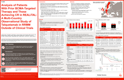 REALiTAL showed similar efficacy and a manageable safety profile to that observed in MonumenTAL-1. Tal demonstrated durable responses, especially in patients achieving CR, including those who had prior anti-BCMA TCRT, highlighting Tal’s potential as an effective real-world treatment for RRMM.