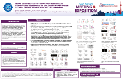 Here, we identified that HSPA9 is significantly overexpressed in MM and correlated with worse outcomes of patients. HSPA9 as a key factor that promoted tumor cell survival by inhibiting cellular ferroptosis. Additionally, we confirmed HSPA9 functions as a scaffold platform for USP14 and xCT interaction, preventing the proteasome-degradation of xCT and further promoting MM progression and ferroptosis resistance. Given that the effects of genetic or pharmacological inhibition of USP14 exerted on xCT ubiquitination and degradation, we conducted further experiments to identify the anti-tumor effects of USP14-specific inhibitor.