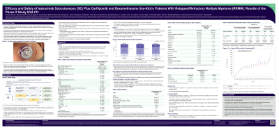 The study met its primary endpoint, demonstrating efficacy, safety, and similar PK exposure of Isa SC administration in combination with Kd, either by manual injection or OBDS. Our study findings are consistent with those reported in the Phase 3 study IKEMA with intravenous Isa. Pts expressed a clear preference for receiving Isa SC by an OBDS.